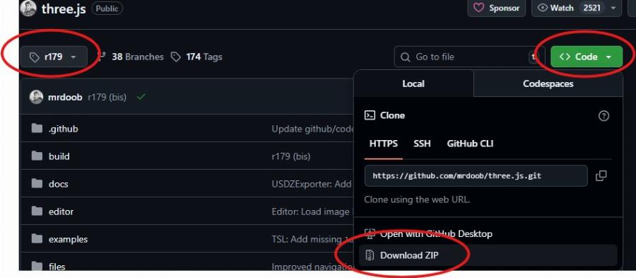 Installation: visitez https://github.com/mrdoob/three.js/tree/r179